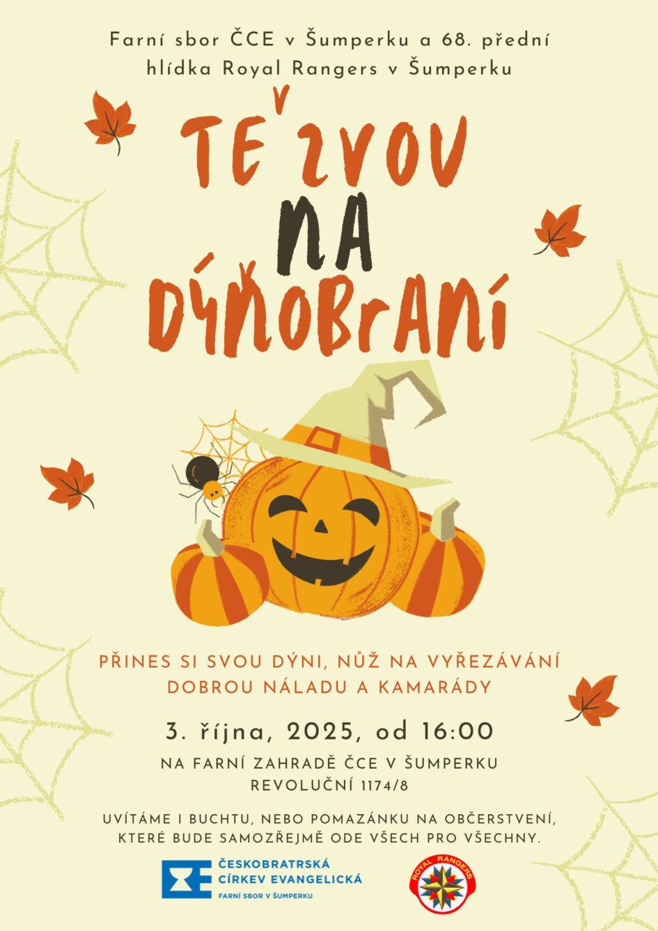 I tento rok se s vámi uvidíme na naší farní zahradě. Nelekněte se ani případného zhoršení počasí, na zahradě máme opravdu velký party stan, ve kterém se dýňová chirurgie dá taky prováďet.