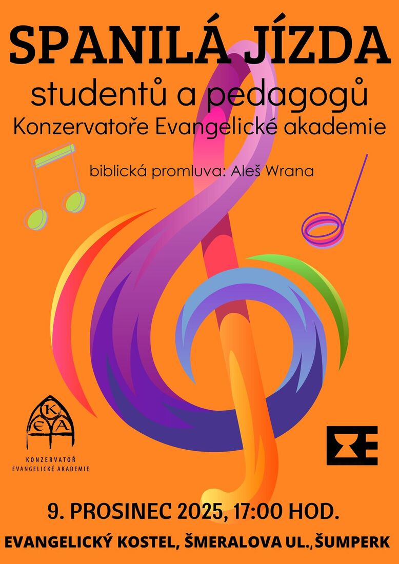 Spanilá jízda studentů a pedagogů Konzervatoře Evangelické akademie v Olomouci už v úterý 9. 12. 2025 v 17:00 v našem evangelickém kostele v Šumperku (oproti hotelu PERK).