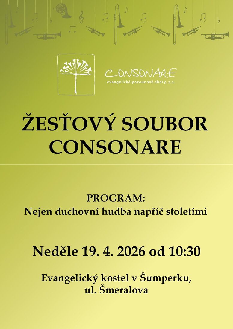 V neděli 19. 4. 2026 v 10:30 v našem kostele zahrají Consonare, muzikanti, kteří hrají na žesťové nástroje. Sjede se jich pár desítek z celé republiky, tak si to nenechte ujít.