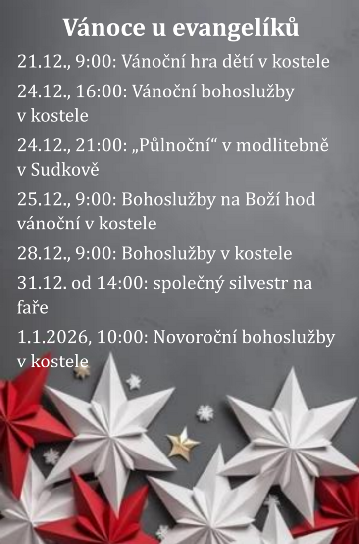 Vánoce? Máme. A taky se v průběhu svátků několikrát sejdeme. Přidejte se k nám.