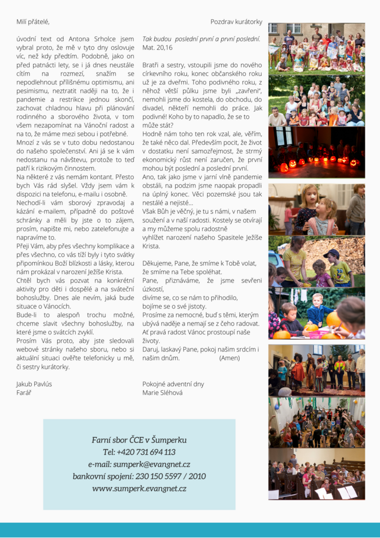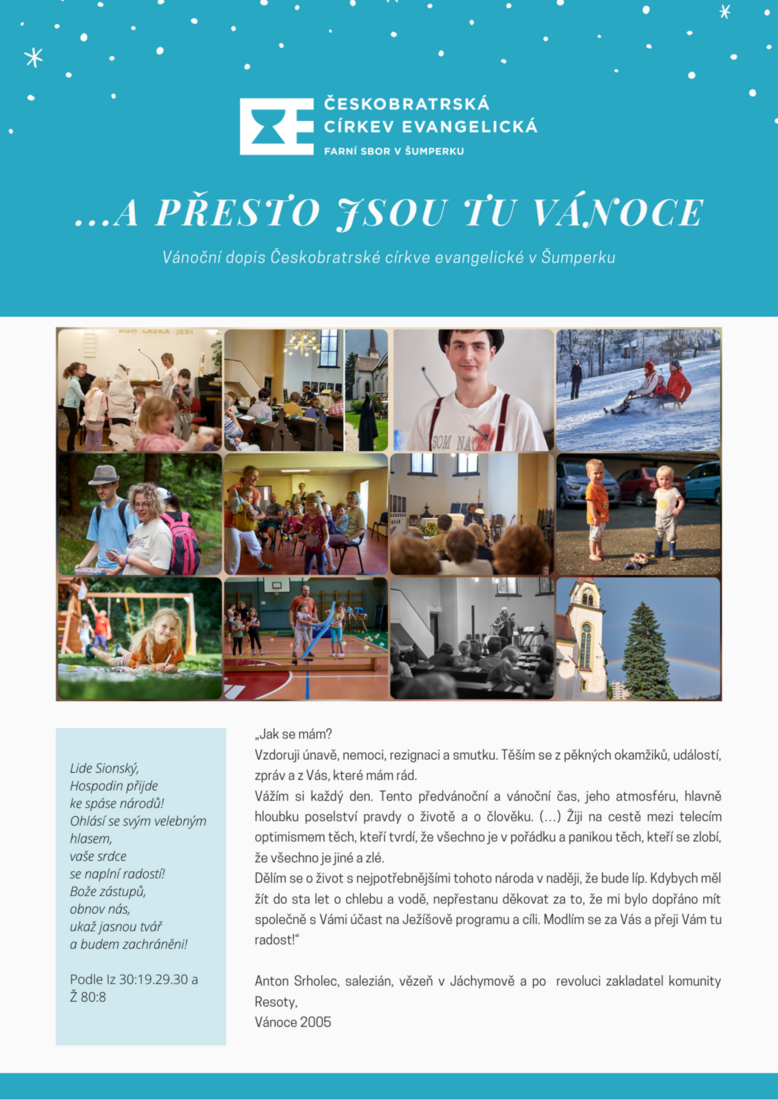 Milí bratři a sestry, přátelé... Jsem rád, že přes všechno, co se letos událo a přes to, že mnoho věcí je jinak, než jsme zvyklí Vám můžeme i letos přinést sborový dopis k Vánocům 2020.